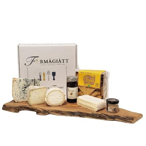 La box aperitivo del Formàgiàtt contiene una selezione di formaggi lombardi e italiani, abbinati con un prodotto da forno artigianale, una confettura di frutta e una confezione monoporzione di miele. Disponibile in tre formati a scelta.